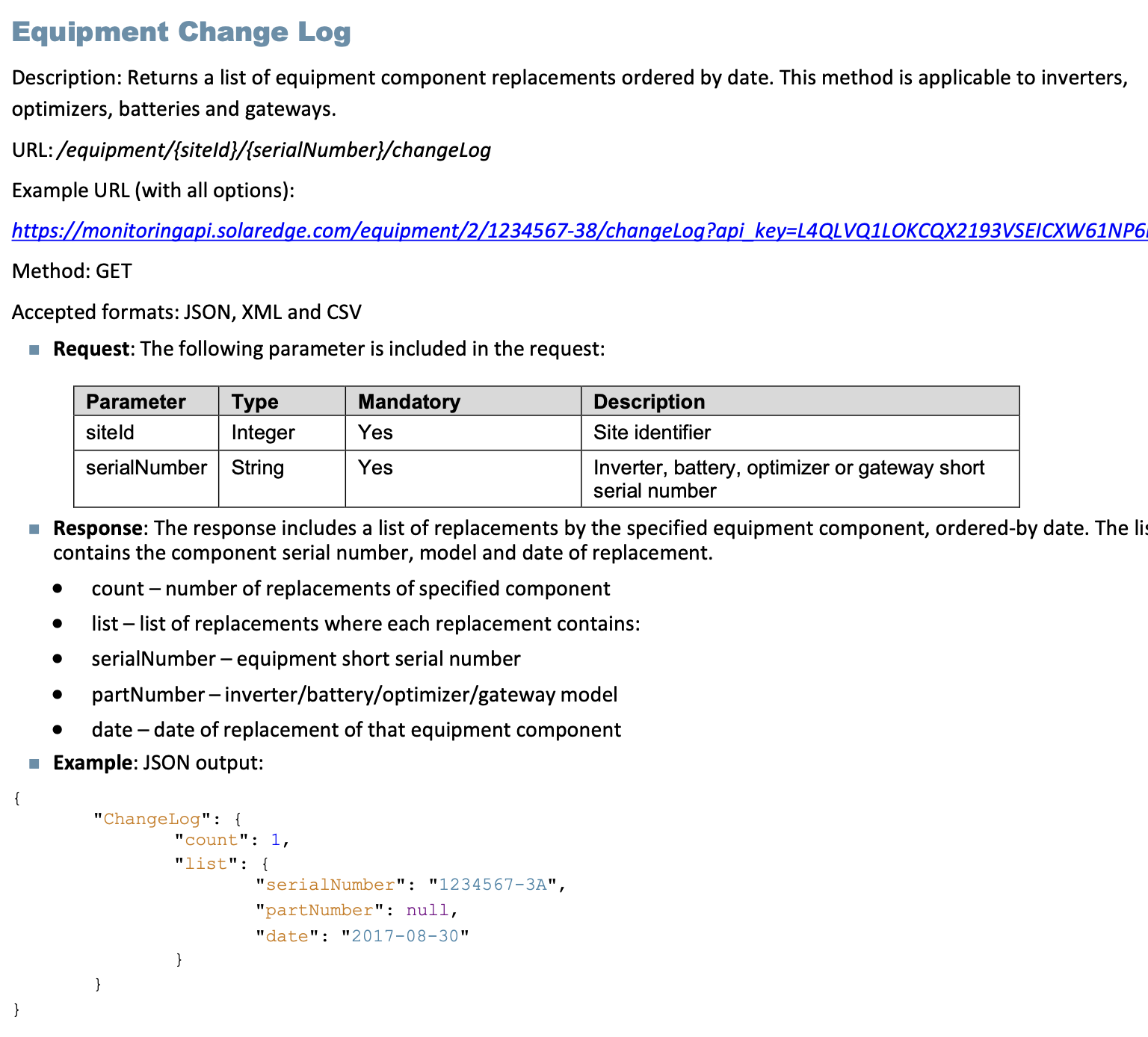The SolarEdge "site inventory" API gives a list of the current devices installed, but they also have a "equipment change log" API that, given an existing device ID, will list out old devices that the current one replaced. Those replaced device IDs should be added to the references returned from the /data-values API.