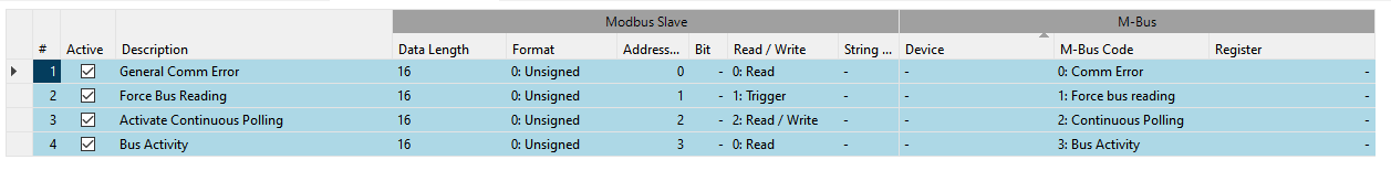 The image below show the configuration screen for the intesis Maps software. They build gateways to convert one signal to an other. You can see how they have structured the modbus and mbus registers in this table. This makes it fast to configure. With some software it is possible to upload a CSV, this makes it much faster to populate when there are a lot of sourceIDS and registers. Do you think a table and upload file facility could be built into solarnode over time?